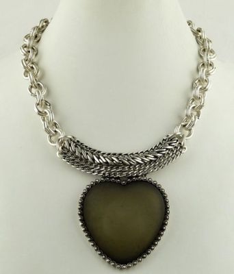 Vintage style jewellery retro art deco antique silver necklace heart pendant