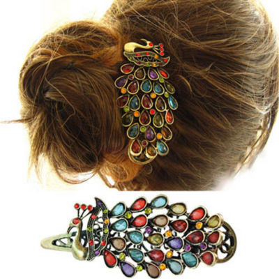 New Colorful Vintage Retro Antique Crystal Peacock Hairpin