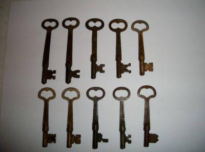 ANTIQUE FLAT SHAFT MORTISE LOCK SKELETON KEYS DOOR FURNITURE LOT OF 10