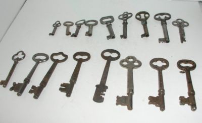 Title (ebay affiliate link): 17 Antique old skeleton/plus key lot furniture cabinet barrel clock keys lot4l