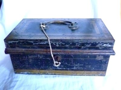 Title (ebay affiliate link): OLD TIN IRON METAL & BRASS CASH COIN DEED DOCUMENT BOX WITH WORKING LOCK AND KEY