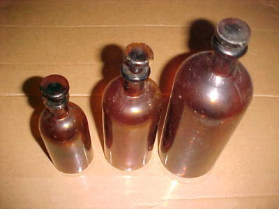 Title (ebay affiliate link): Antique Medicine Bottles With Glass Stoppers Amber/1900