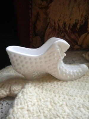 Fenton Milk Glass Hobnail Cat Head Shoe Vintage shoe Antique milk glass