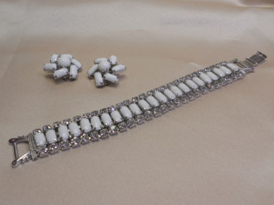 Title (ebay affiliate link): Vintage Rhinestone and Milk Glass Jewelry Bracelet and Earrings