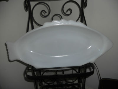 VINTAGE GLASSBAKE LARGE MILK GLASS FISH DISH-VERY NICE!!