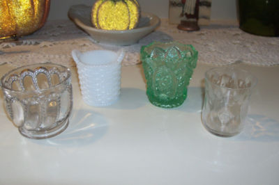Title (ebay affiliate link): 4 ANTIQUE GLASS TOOTHPICK HOLDERS ~ ETCHED~MILK GLASS~ & EAPG