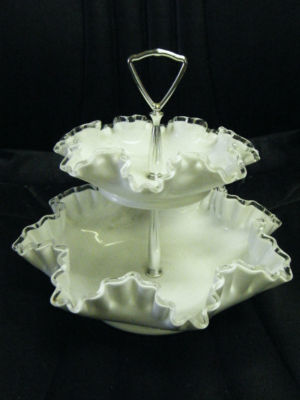 vintage Fenton silvercrest 2 tiered bon bon candy milk glass estate find WOW