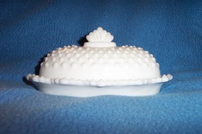 Title (ebay affiliate link): Fenton White Milk Glass Hobnail 8" Oval Covered Butter Dish No Reserve