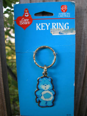 Title (ebay affiliate link): American Greetings Care Bear KEY RING CHAIN Grumpy Bear VINTAGE