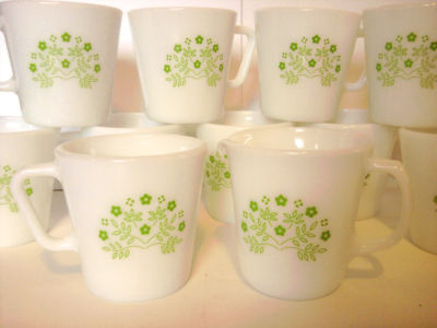 Title (ebay affiliate link): 11 pc Vintage Pyrex Honeydew Green Coffee Mug and Creamer Milk Glass Cups 1960s