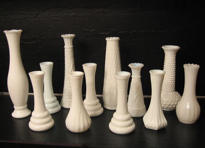 lot 12 vintage milk glass vases hoosier, eo brody, randall, wedding