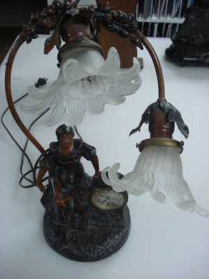 Antique Old Figural Lamp with Clock Metal Sculpture Statue NO RESERVE
