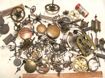 Title (ebay affiliate link): GROUP OF MANY ANTIQUE CLOCK PARTS, GEARS, PENDULUMS, ETC.