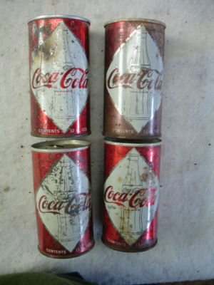 Title (ebay affiliate link): 4 1963 COCA-COLA DIAMOND BOTTLE LOGO STEEL SODA CANS WITH ALUMINUM PULL TOPS