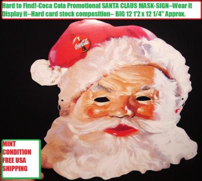 Title (ebay affiliate link): Coca Cola Coke Promo SANTA CLAUS MASK SIGN STORE ADVERTISEMENT 12 1/2" MINT