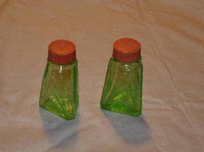 Title (ebay affiliate link): Green Depression Salt & Pepper Shakers with Plastic Top