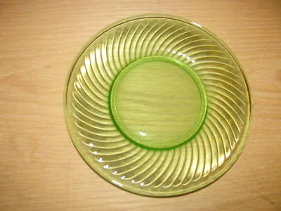 Title (ebay affiliate link): Depression Green vaseline glass "sprial" dinner plate