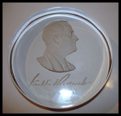 Title (ebay affiliate link): VINTAGE FDR FRANKLIN D ROOSEVELT PAPERWEIGHT LEADED GLASS #127/2000 SIGNED MS