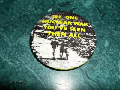 Title (ebay affiliate link): SEE ONE NUCLEAR WAR YOU'VE SEEN THEM ALL EARLY 1980'S 1 5/8" PINBACK
