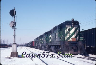 Original slide- BN SD7 #6025 & Train In Madison,IL.