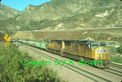 Original slide- UP SD70M #3829 & Ballast Train In Cajon Pass