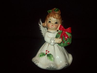 Title (ebay affiliate link): Vintage Josef Originals Christmas Angel Holding Wreath Japan
