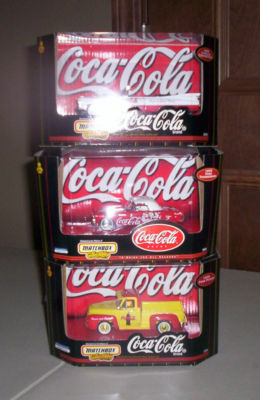 Title (ebay affiliate link): Matchbox Collectibles Coca Cola - LOT 3 - 59 Cadillac, 55 Ford PU, 55 Ford TBIRD