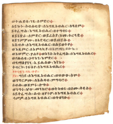 LARGE ETHIOPIAN BIBLE LEAF MANUSCRIPT ON VELLUM: