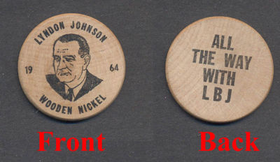 Lyndon Johnson Wooden Nickel from 1964