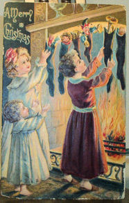 Vintage Christmas Postcard, Children on Christmas Morning, 1908
