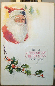 Vintage Christmas Postcard:Santa and Holly, circa 1910