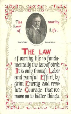 Title (ebay affiliate link): PRESIDENT THEODORE ROOSEVELT POSTCARD 1910 THE LAW OF WORTHY LIFE