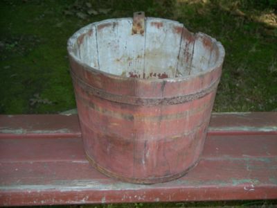 Title (ebay affiliate link): AAFA PRIMITIVE WOODEN BARN RED SAP BUCKET VERMONT TYPE