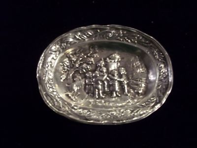 Title (ebay affiliate link): Early Antique Silver hallmarked "Childs Tray"Hand made Children at play