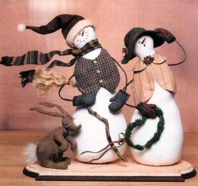 PRIMITIVE WINTER SCENE~SNOW FOLK & HARE DOLL PATTERN