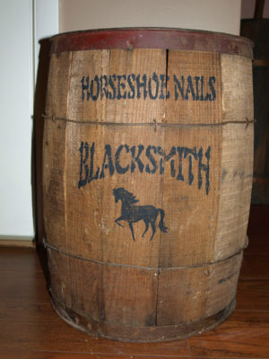 Antique Country Primitive Barn wood barrel nail keg horse blacksmith horseshoe