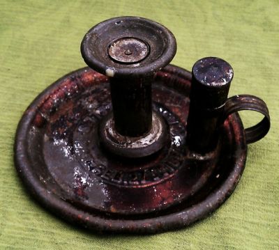 Title (ebay affiliate link): Pat. 1855 Antique TIN CANDLESTICK w Match Holder Handle