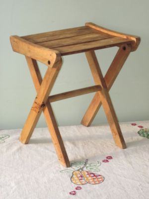 Title (ebay affiliate link): Vintage Wood Fold-up FOOTSTOOL Slat Top Foot Stool