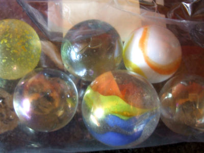 6 MARBLES ( 5 LARGE 1 EXTRA LARGE ) GLASS MARBLES