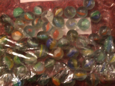 Title (ebay affiliate link): 61 MARBLES (1 MEDIUM 60 VERY SMALL / SMALL) GLASS MARBLES