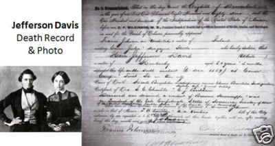 Title (ebay affiliate link): Jefferson Davis DEATH CERTIFICATE, Confederate President + PHOTO,1889 Louisiana