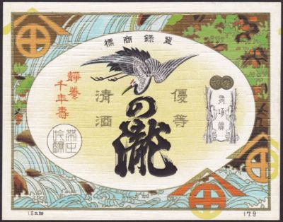 Title (ebay affiliate link): Vintage Japanese Sake Bottle Label "Tsuru-no-taki" Pre-WW2 Japan