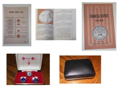 ATTENTION COLLECTORS 1956 GOLD UAW CUFFLINKS Tie Pin & Financial Report LIKE NEW