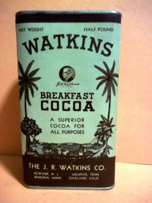 vintage container Watkins Breakfast Cocoa with tin lid and base