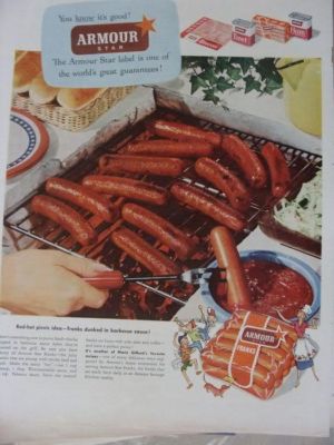 1955 Armour HOT DOGS FRANKFURTERS AD BBQ