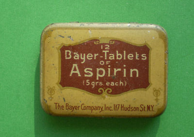Title (ebay affiliate link): ca. 1910s BAYER TABLETS OF ASPIRIN Early 12 Tin Bayer Co. 117 Hudson St. NY