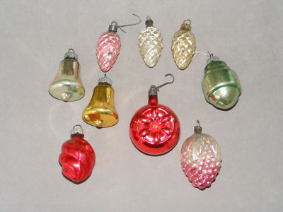 Title (ebay affiliate link): Lot of Vintage Glass Christmas Ornaments (Bells, Pinecones, Indent, Grapes)