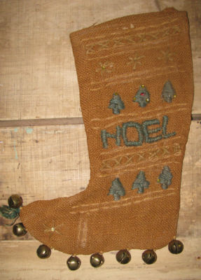 Title (ebay affiliate link): VINTAGE BURLAP HOLIDAY CHRISTMAS STOCKING EMBROIDERY NOEL & BELLS ATTACHED