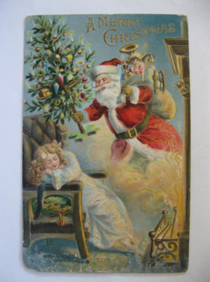 Title (ebay affiliate link): Vintage Christmas 1910 Santa Postcard with toys Child embossed with Stamp