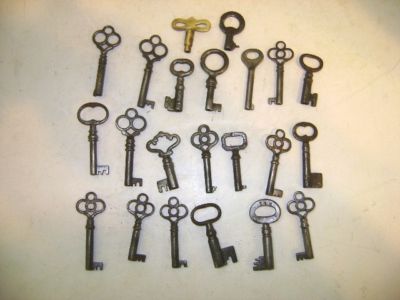 LOT ANTIQUE BARREL OR FURNITURE KEYS